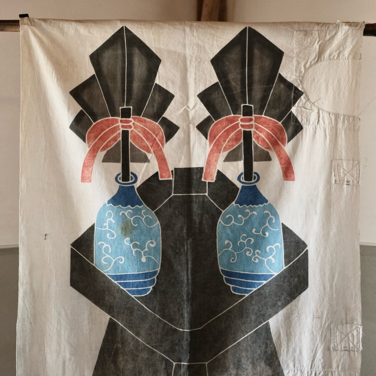 Vintage Japanese Boro tsutsugaki Fabric flag banner