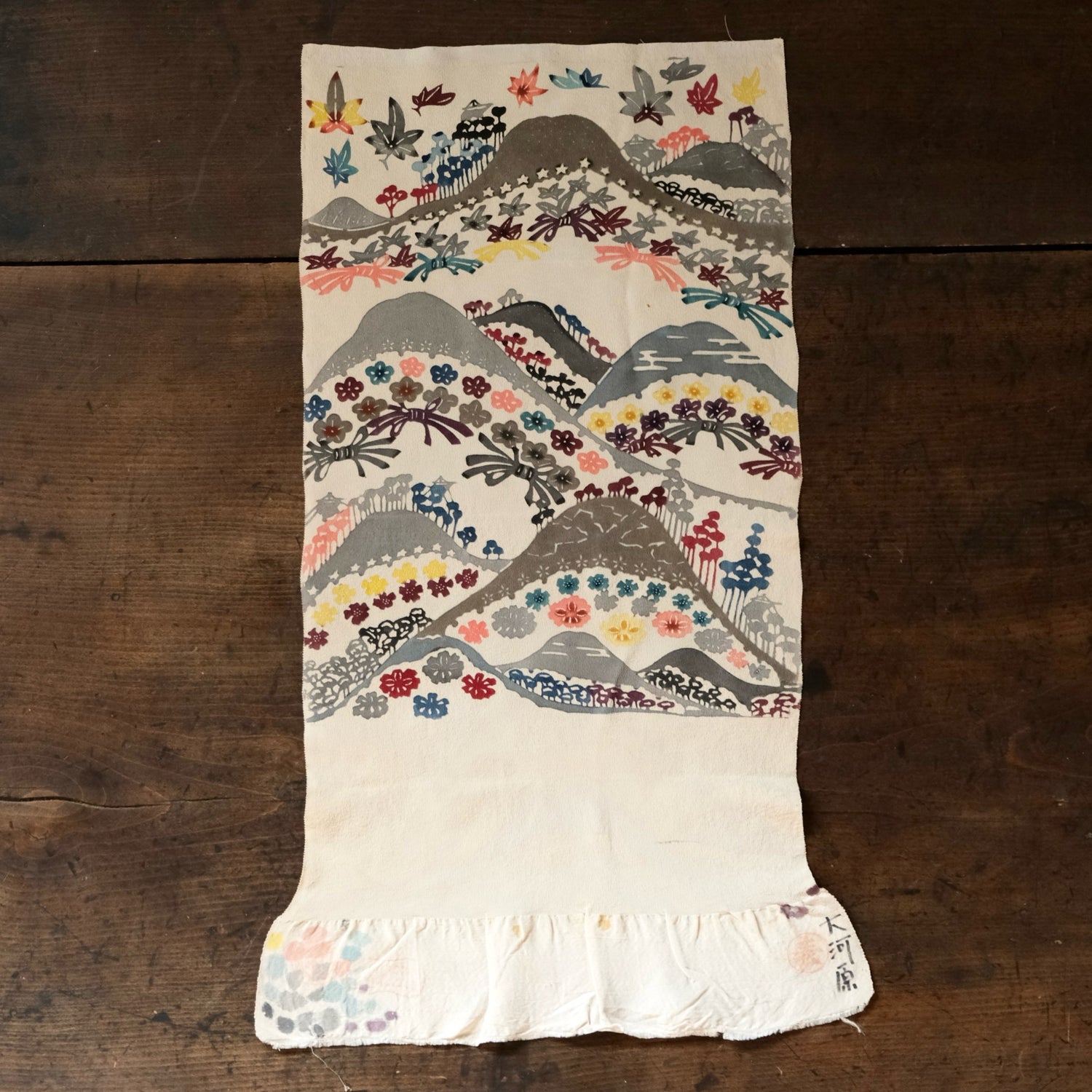 Vintage Japanese kimono silk textile Ryukyu Bingata Okinawa mountains (b-37)