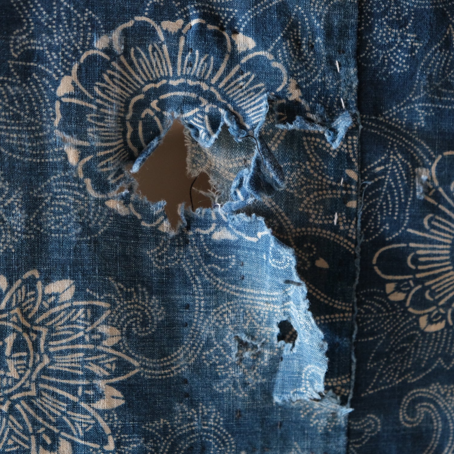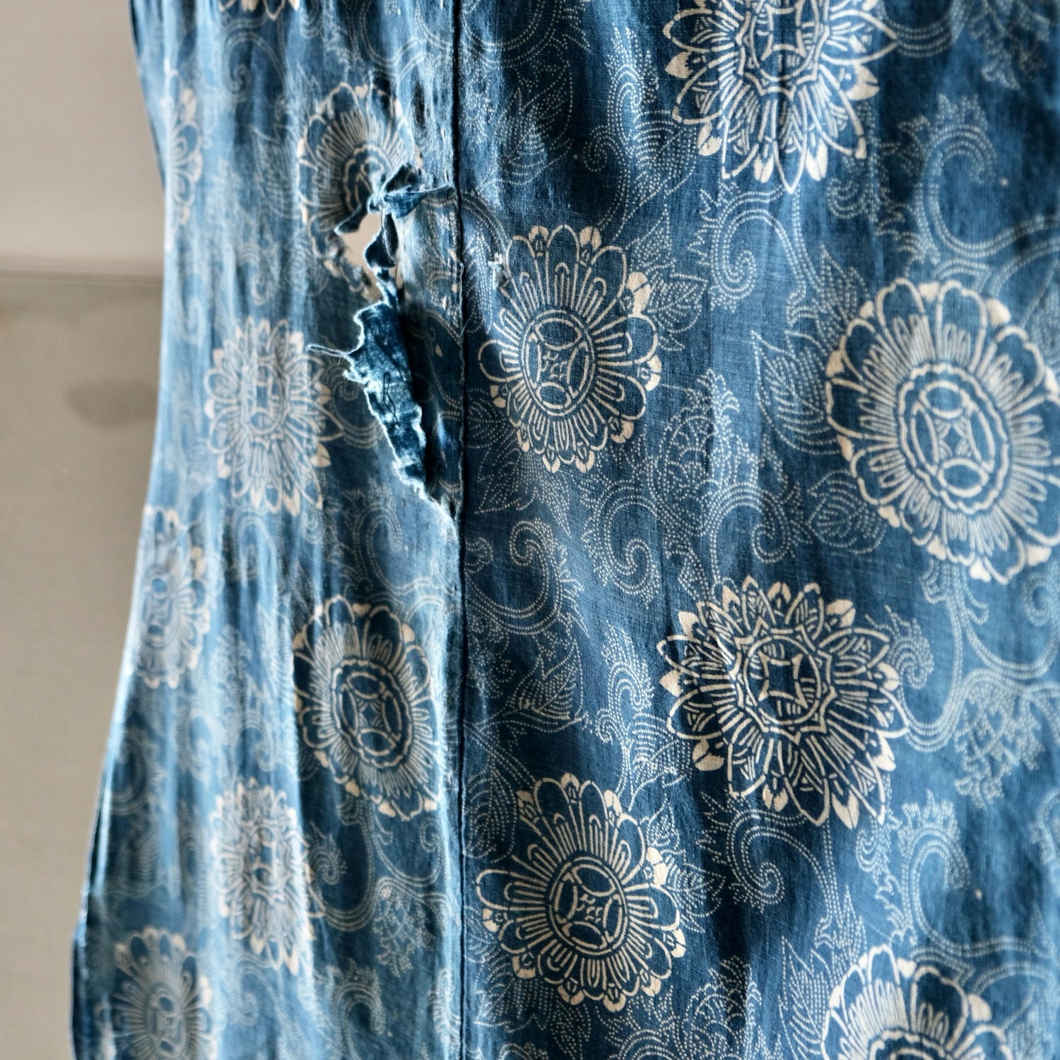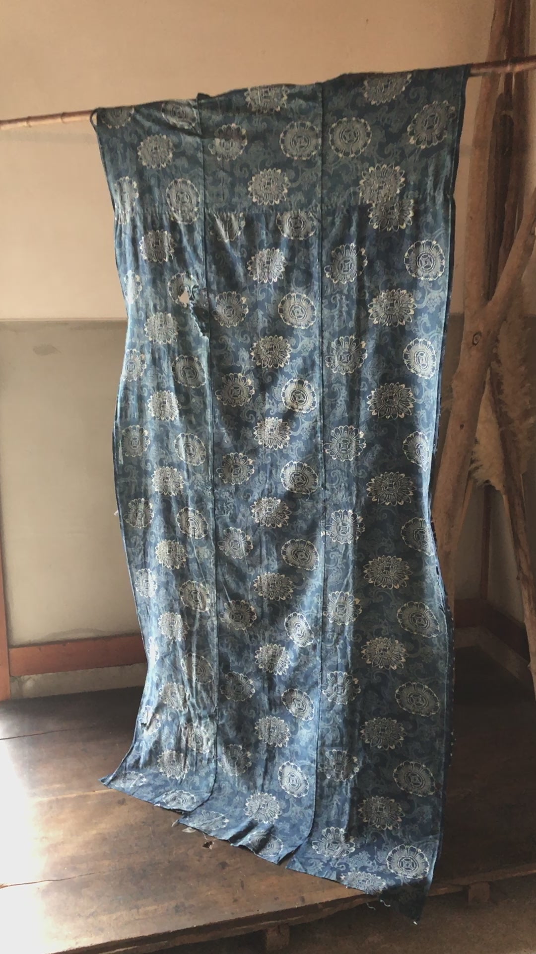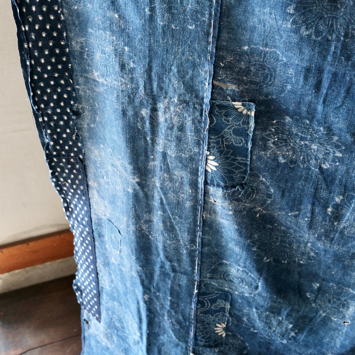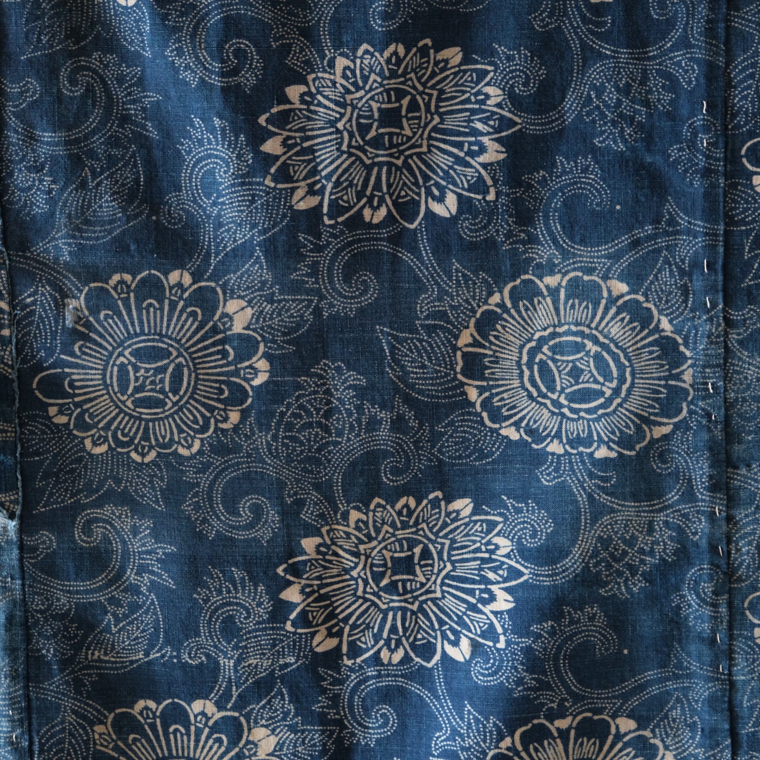 Vintage Japanese Boro Katazome Sashiko indigo-dyed textile chrysanthemum(b-5)