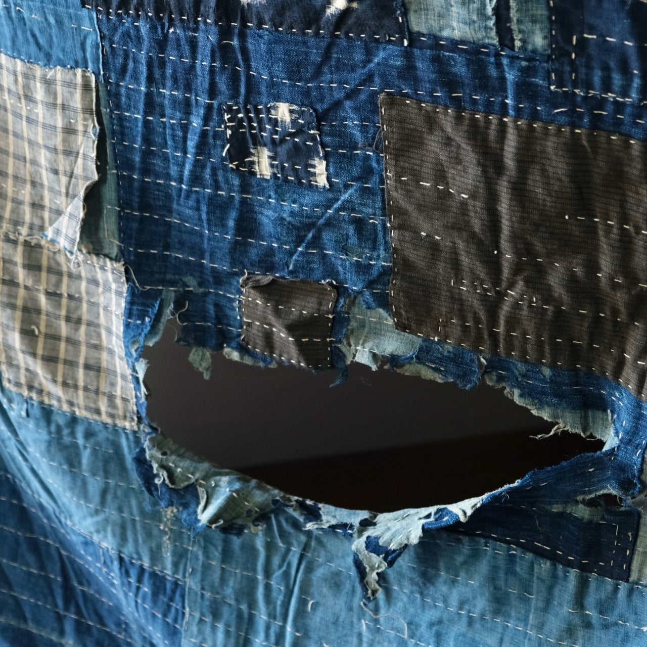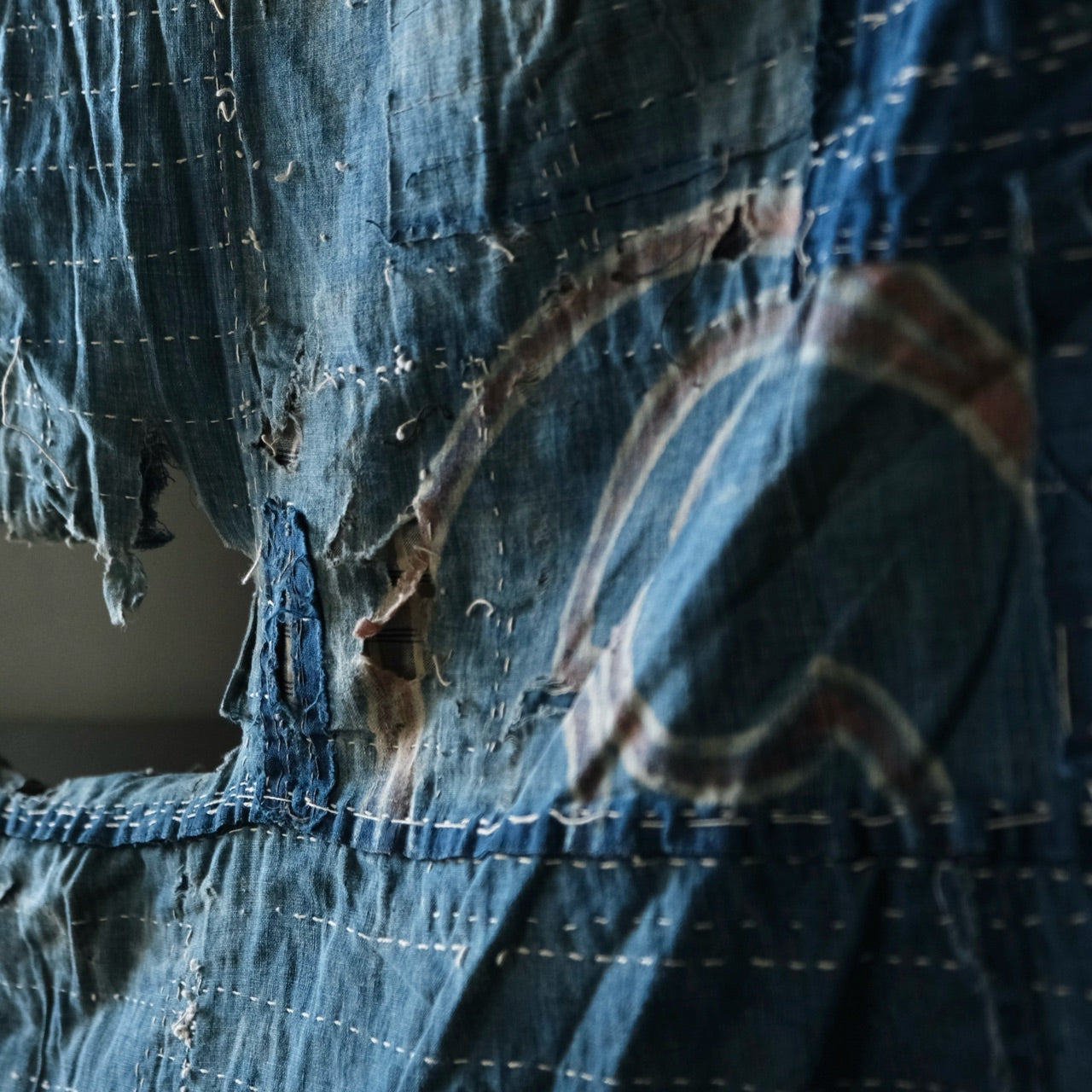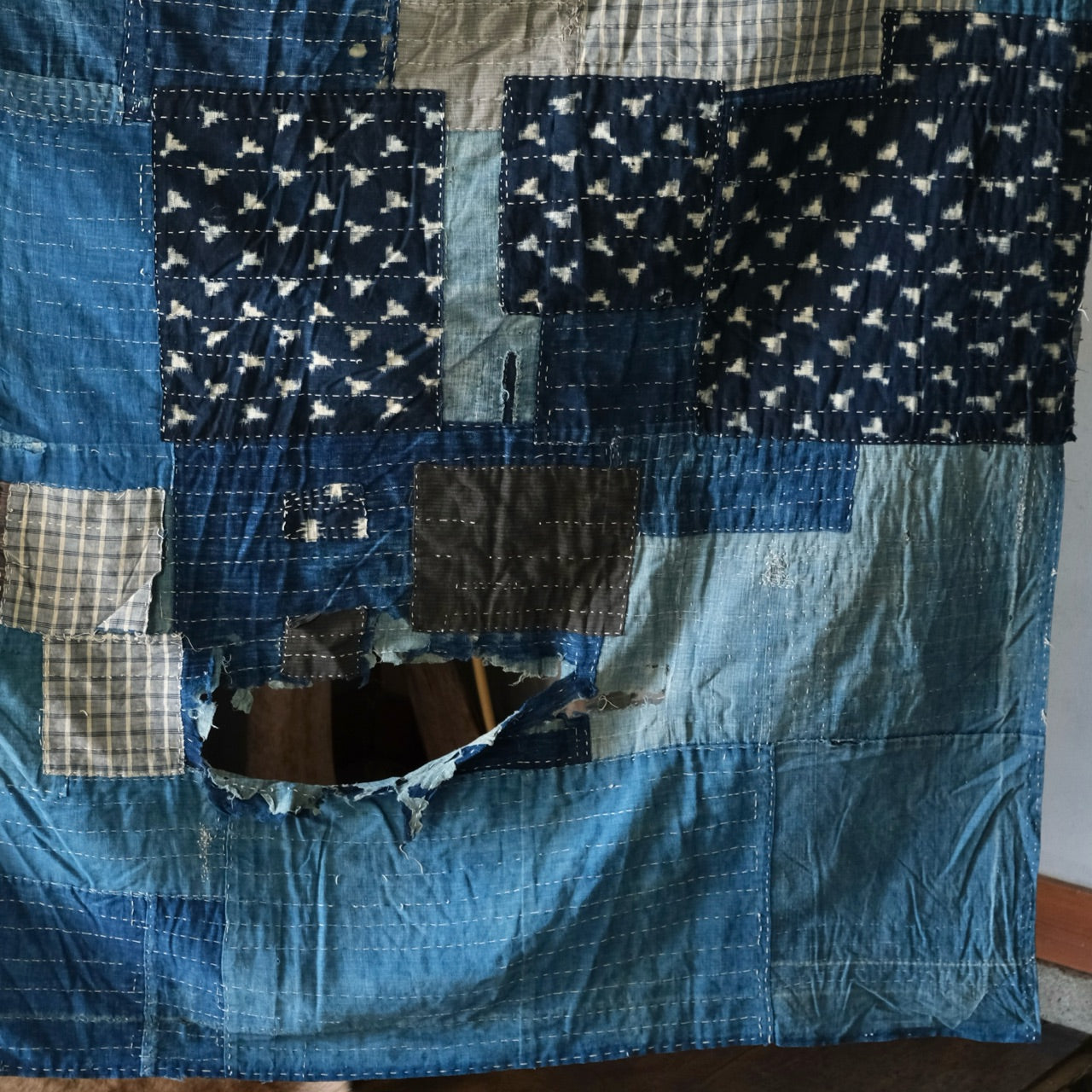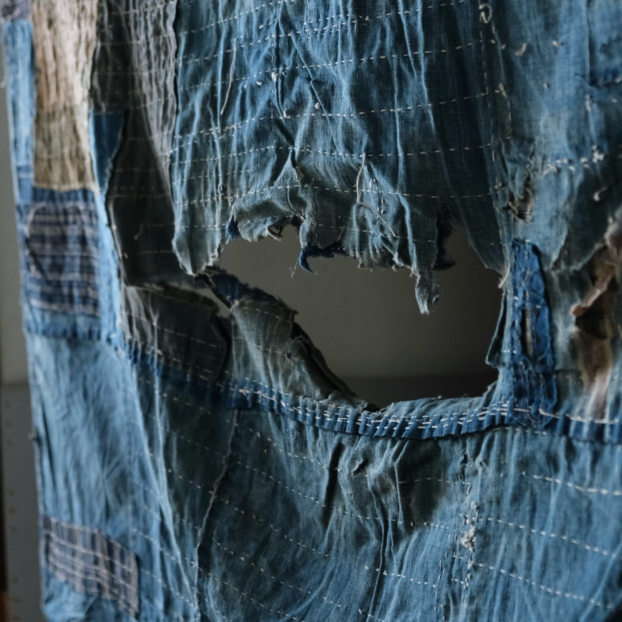 Vintage Japanese BORO rug Sashiko indigo dyeing