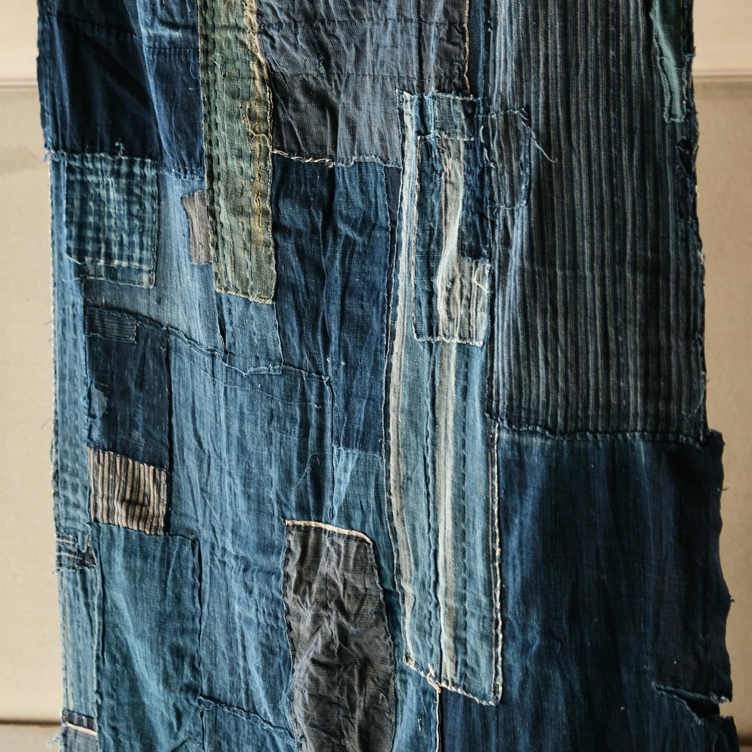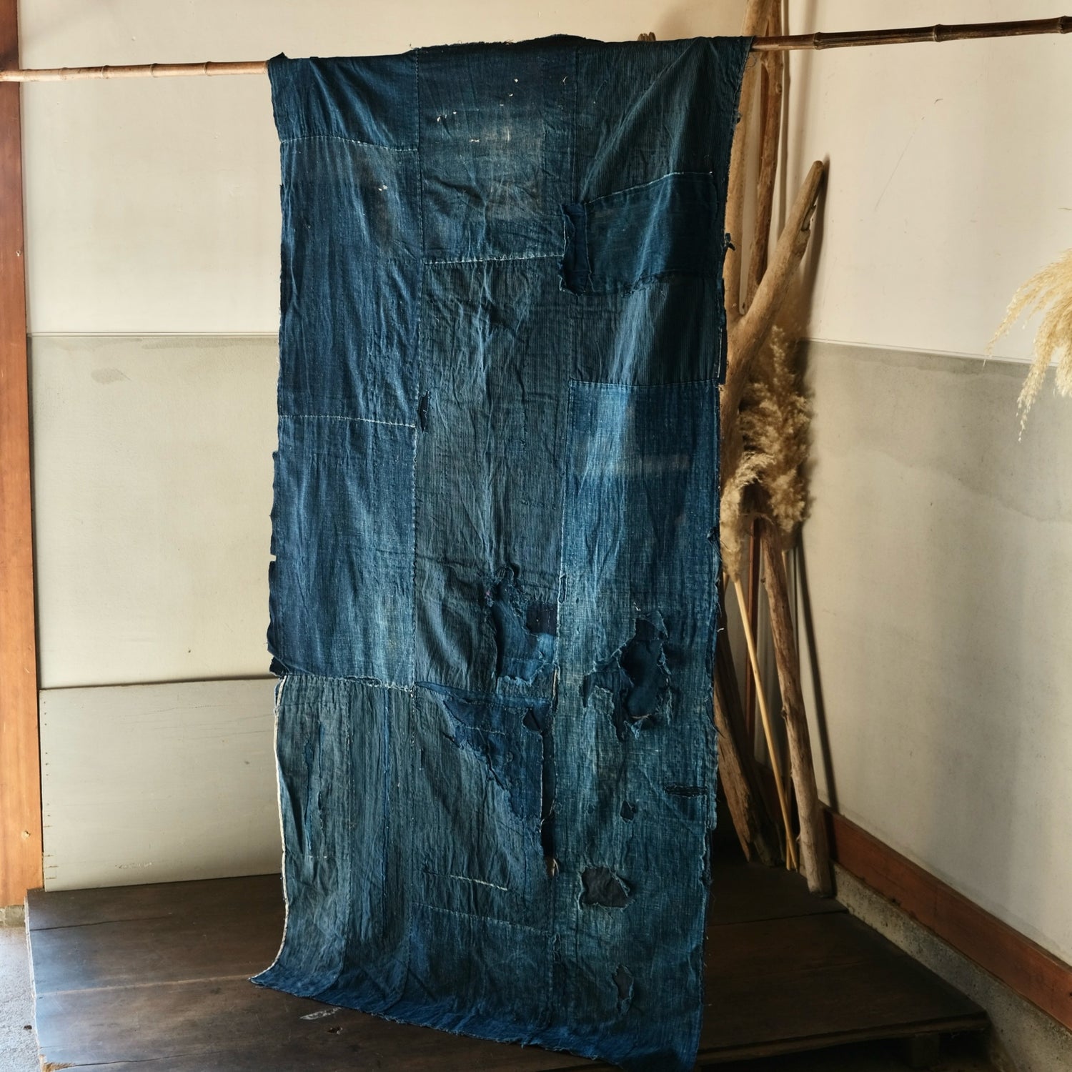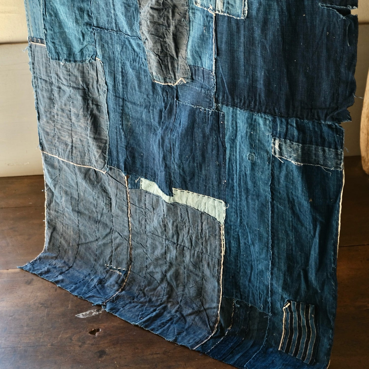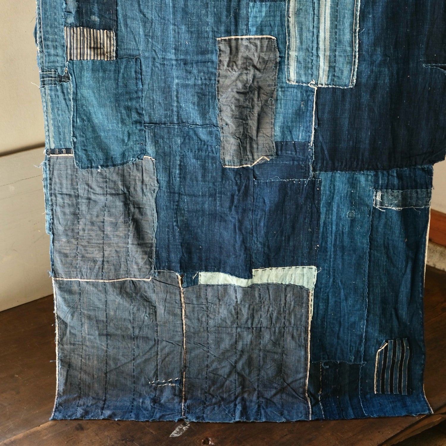 Small fabrics were stitched together with Sashiko stitching. It has been used and washed for a long time, so it has a soft texture and a beautiful faded color.