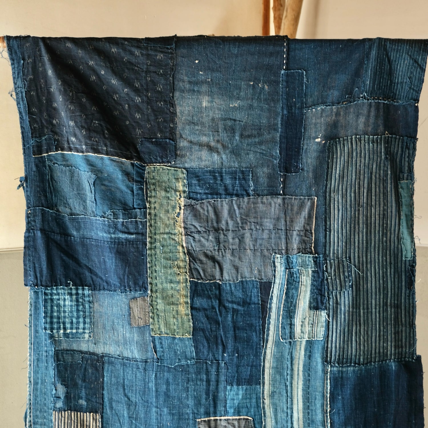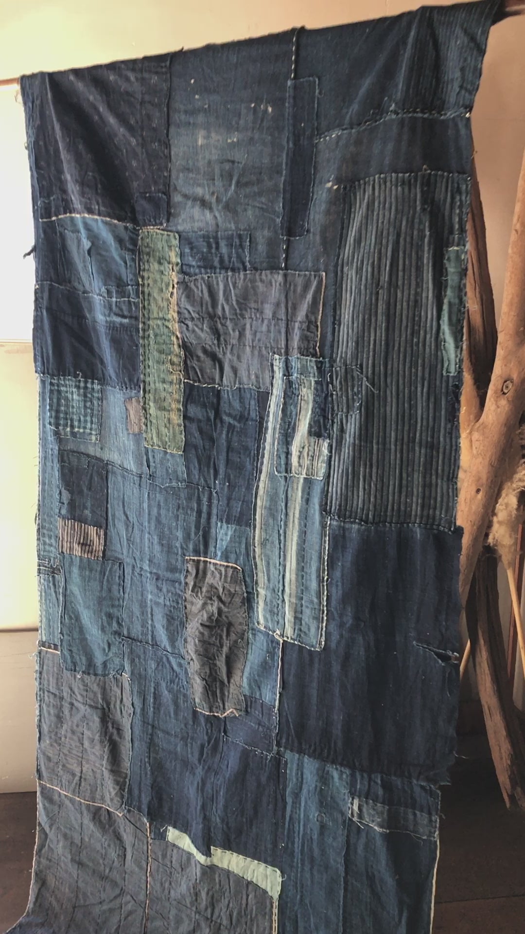 Vintage Japanese Boro rug sashiko stitched indigo aizome