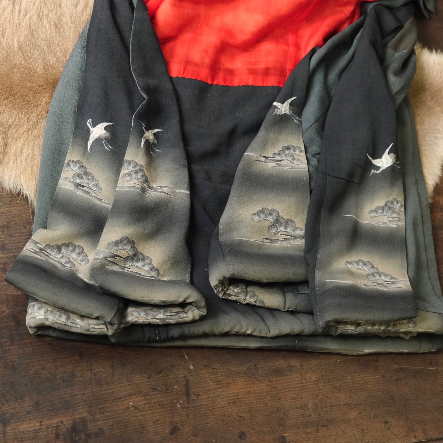 The hem of this kimono is filled with cotton. The lining is very cool and looks great when hanked.