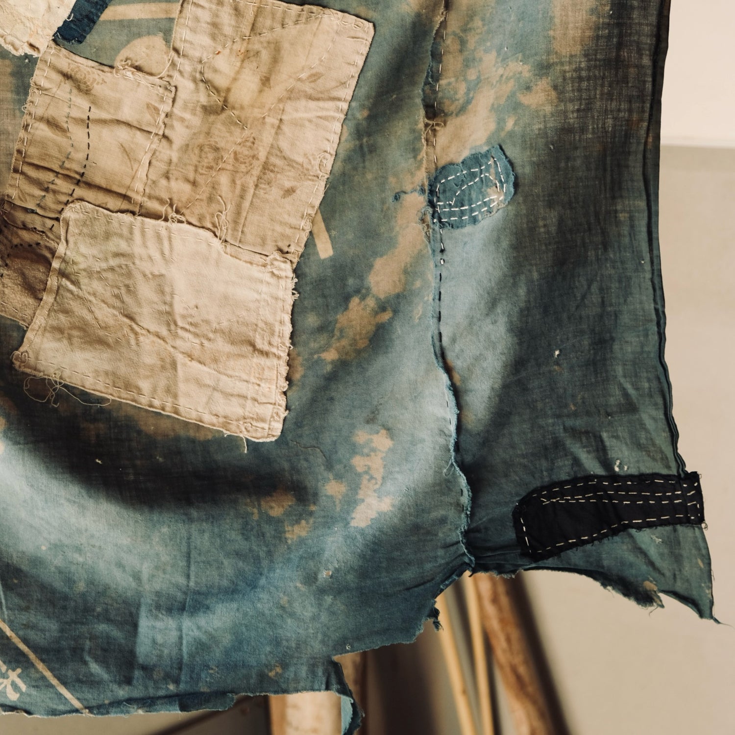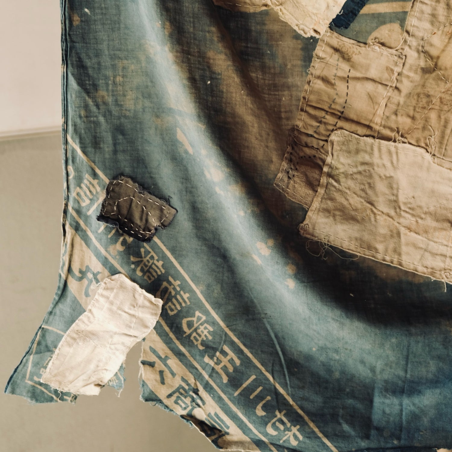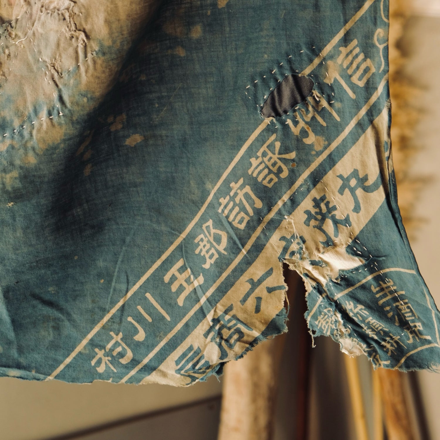 This is an indigo-dyed Boro Furoshiki made over 100 years ago.