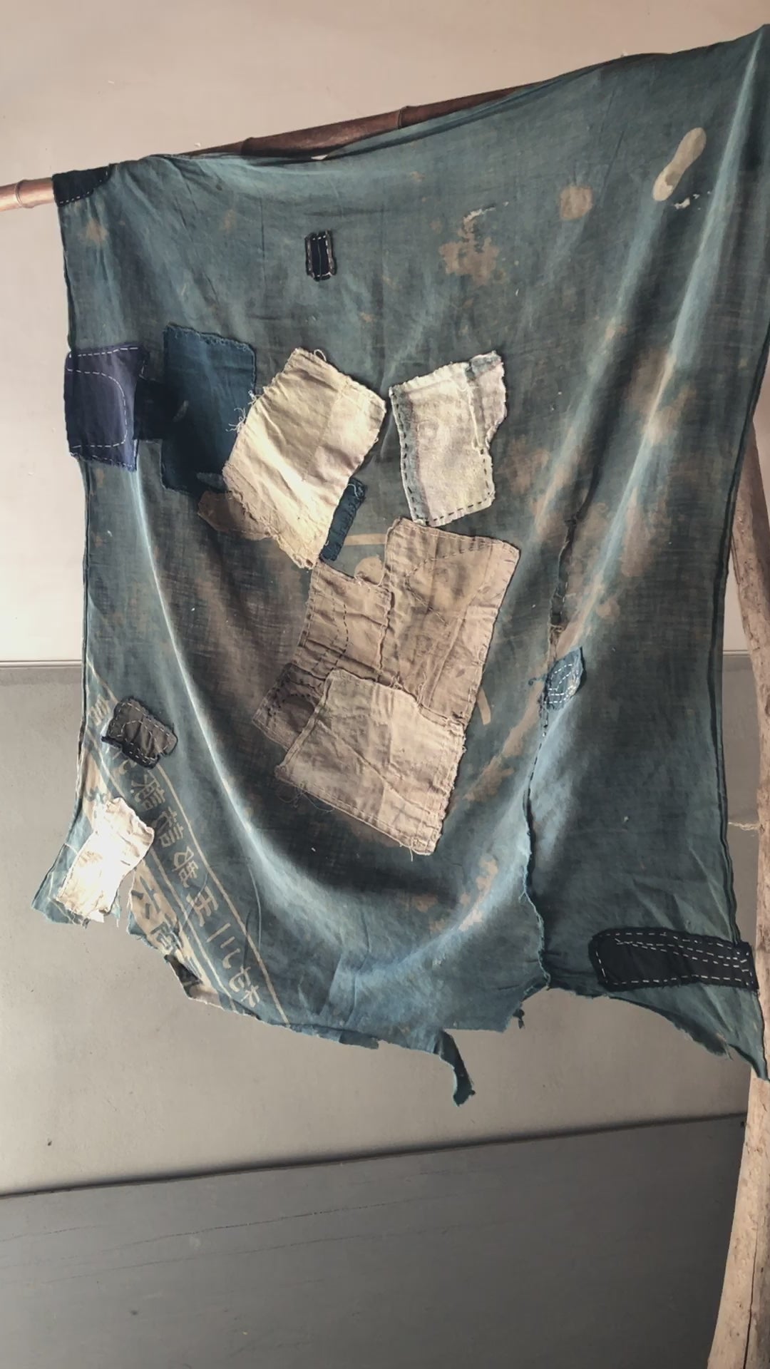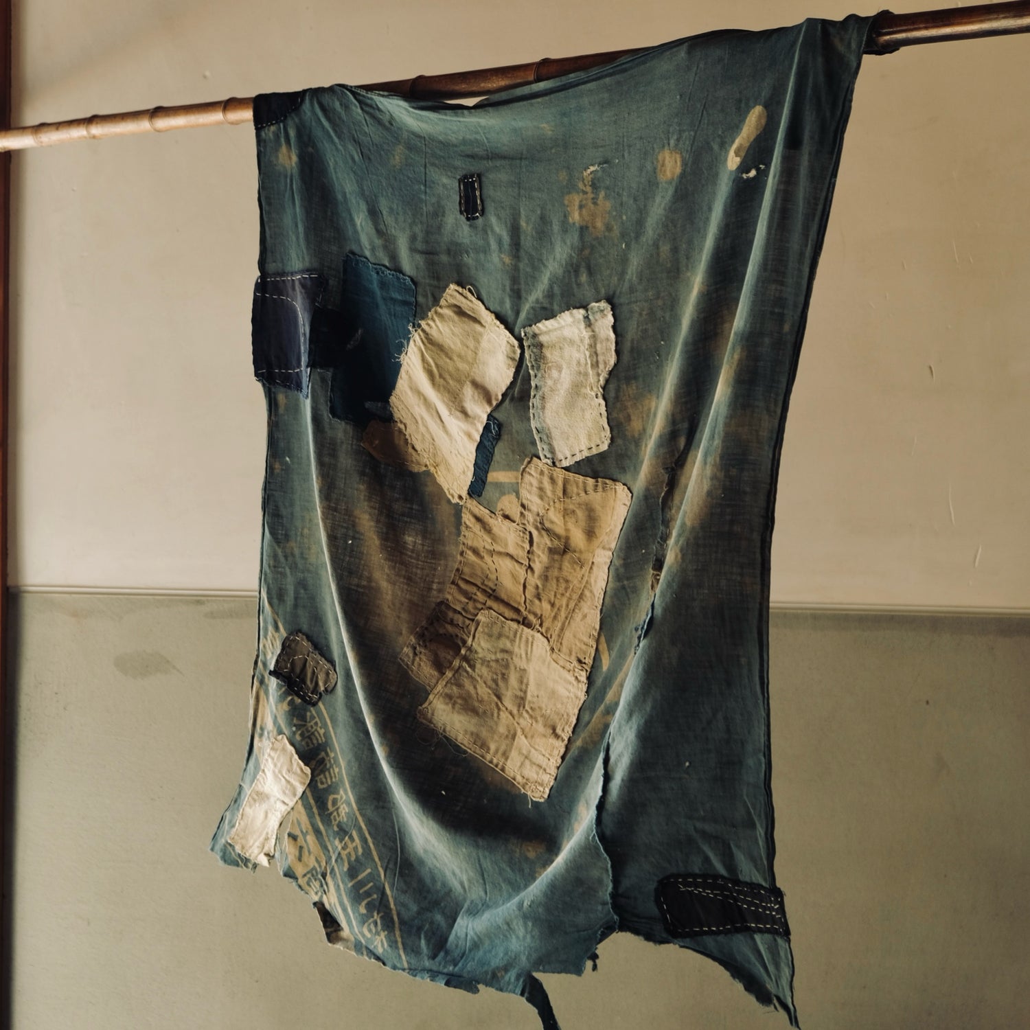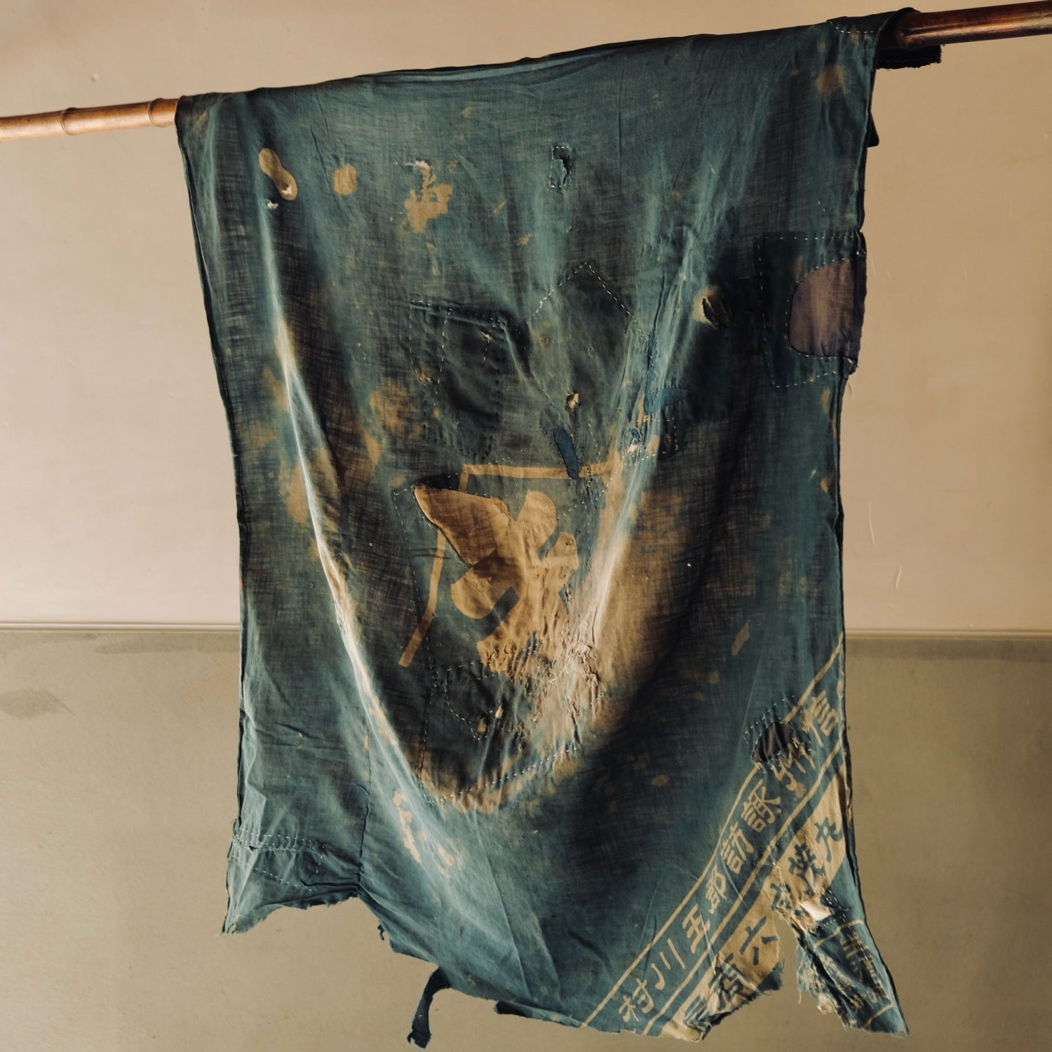 This is an indigo-dyed Boro Furoshiki made over 100 years ago.