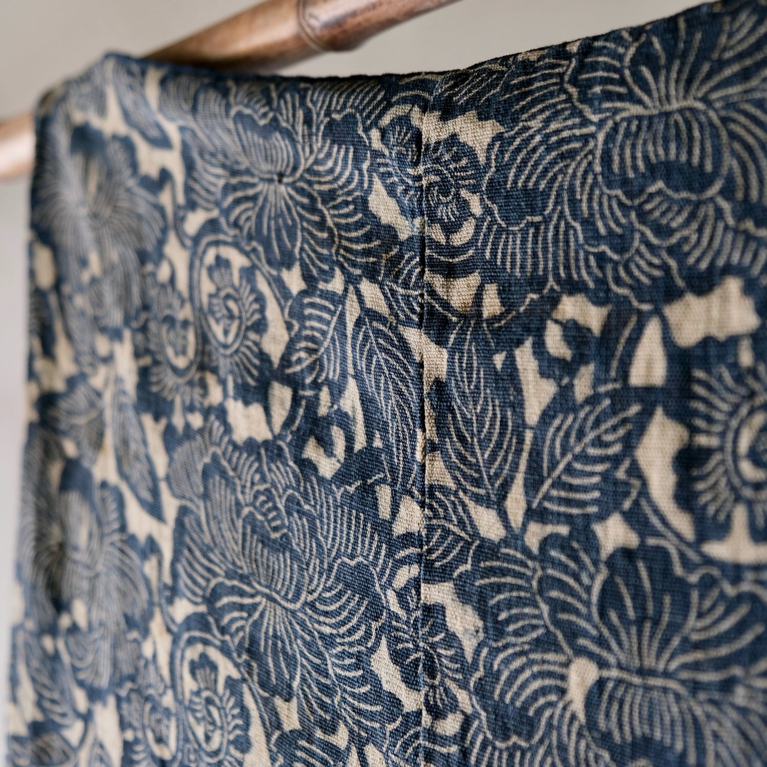 We present a remarkable Vintage Japanese Katazome (stencil-dyed) textile crafted from Hemp (Asa). The inherent crispness and beautiful texture of the hemp fiber give this piece a distinct elegance and structure, setting it apart from cotton textiles.