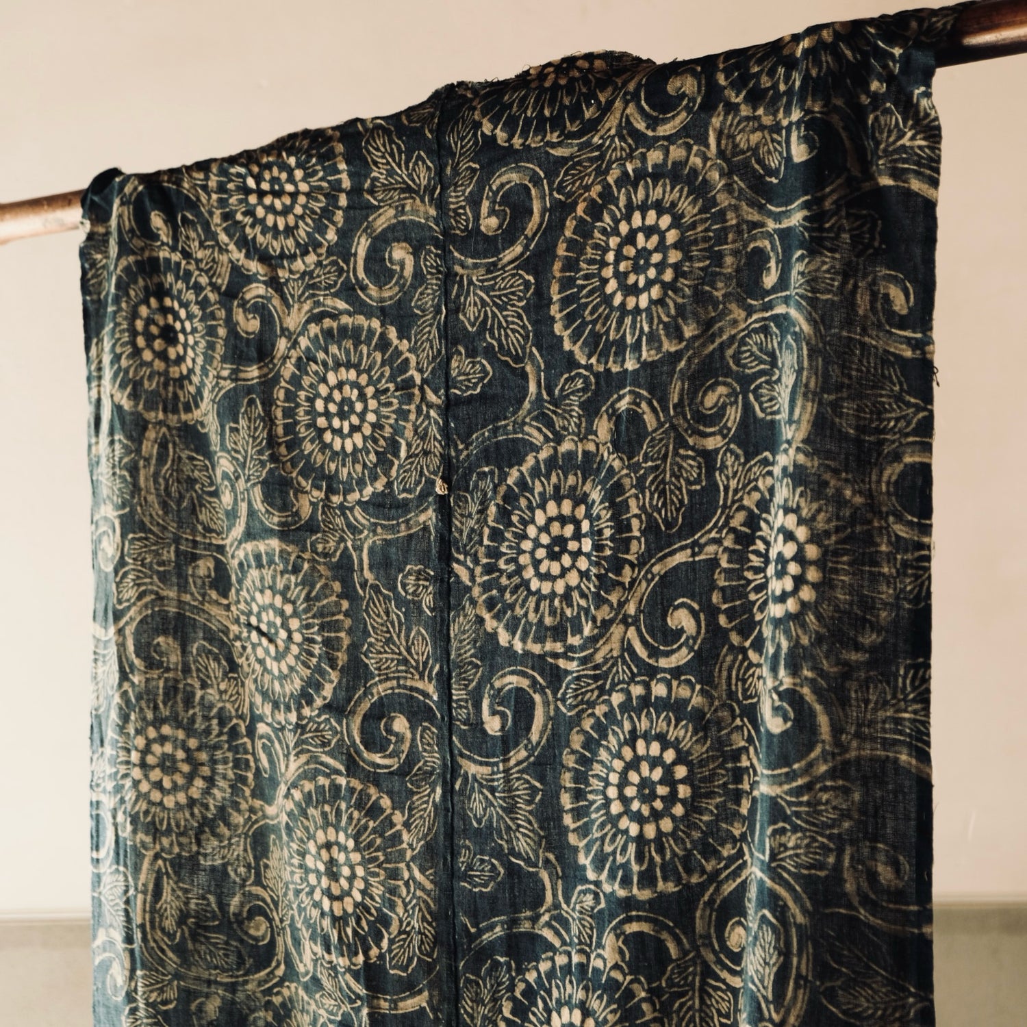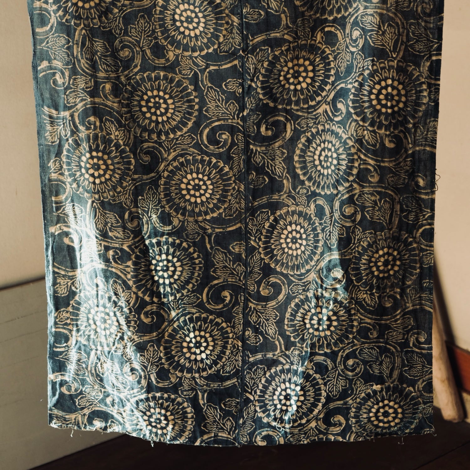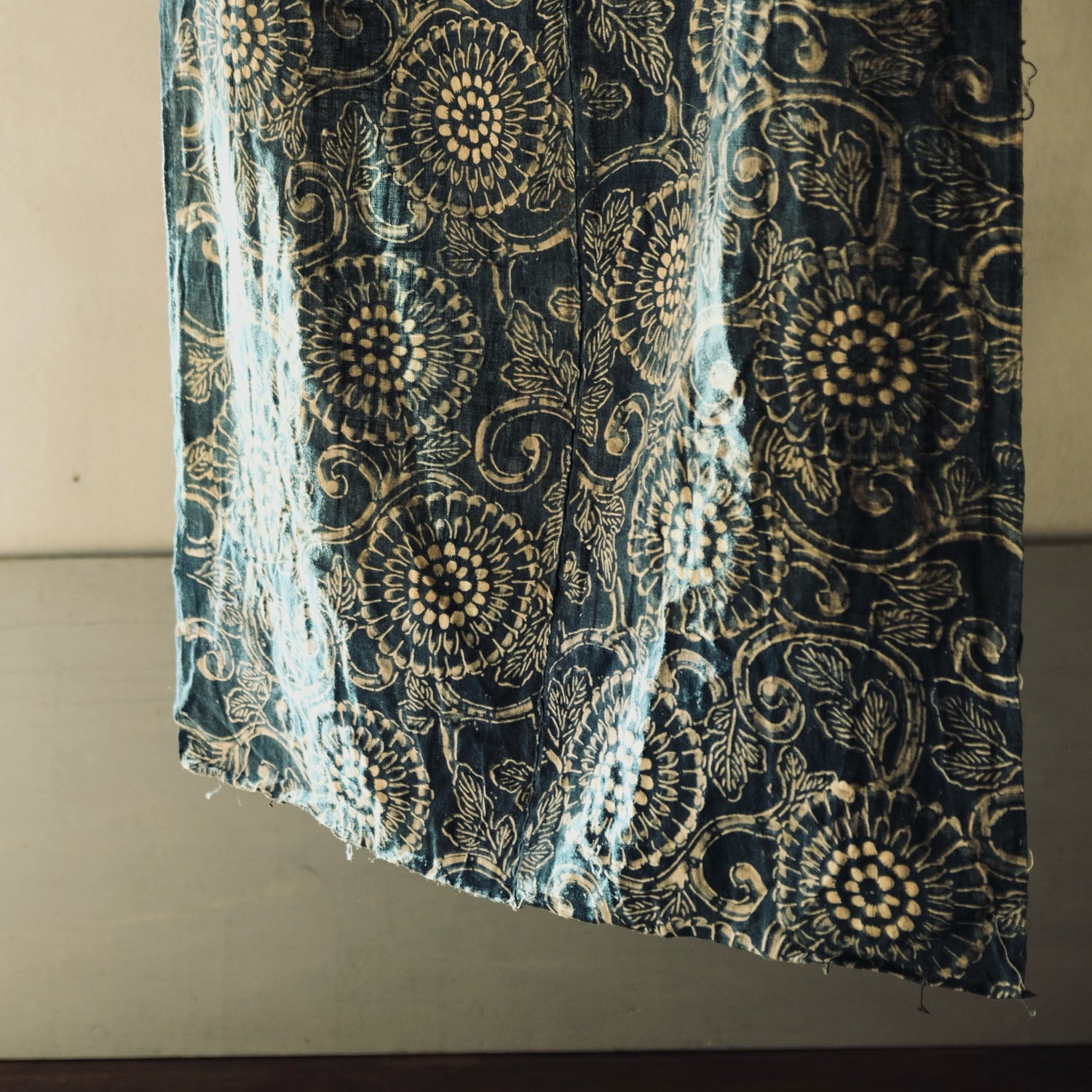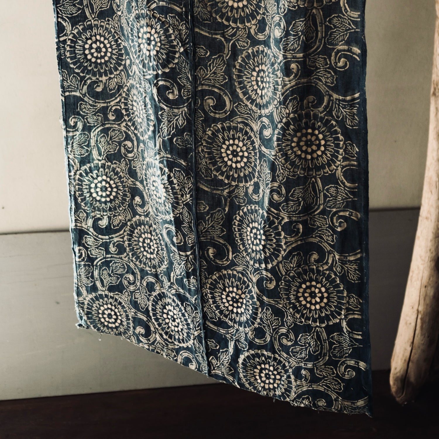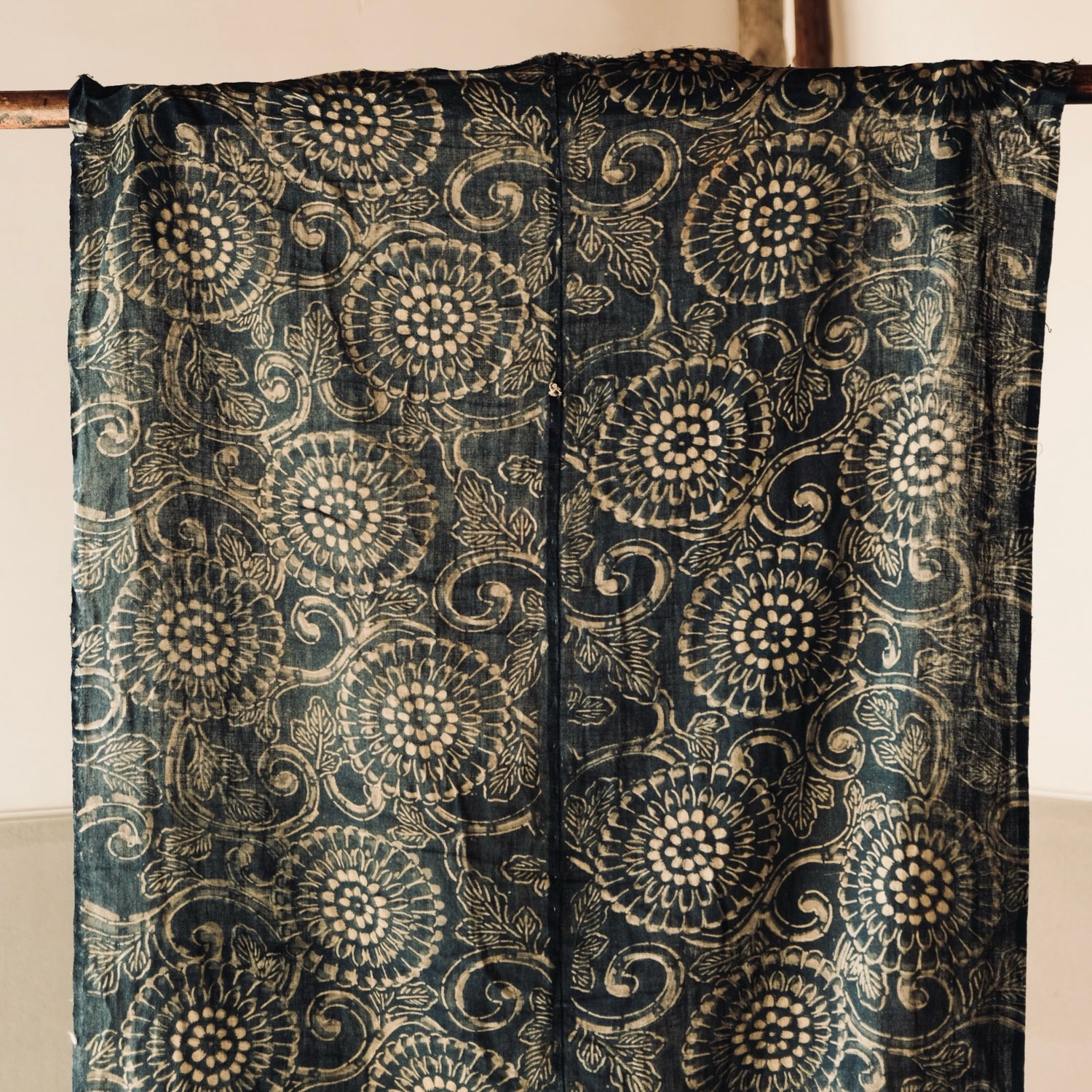 Vintage Japanese indigo dyed katazome chrysanthemum flower textile