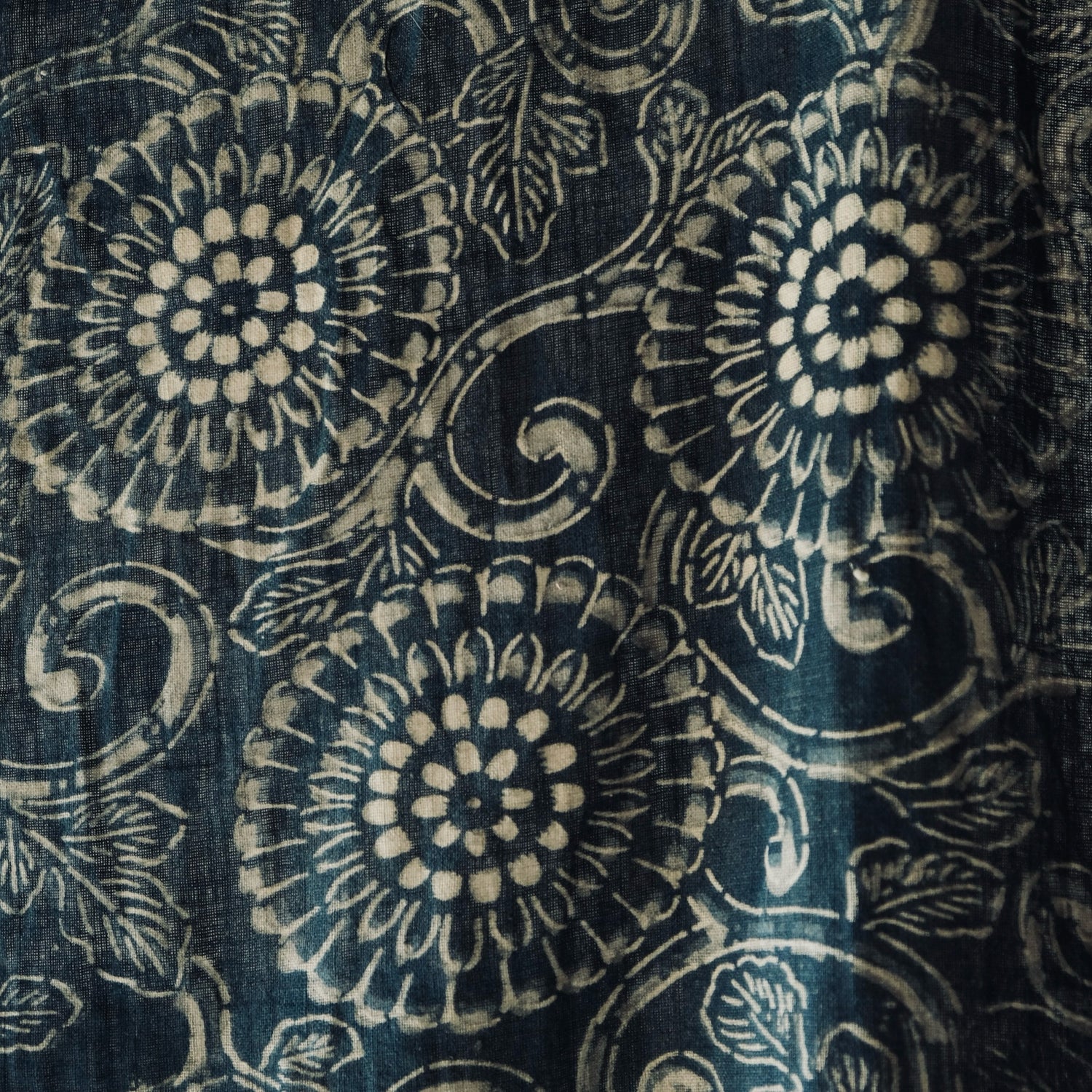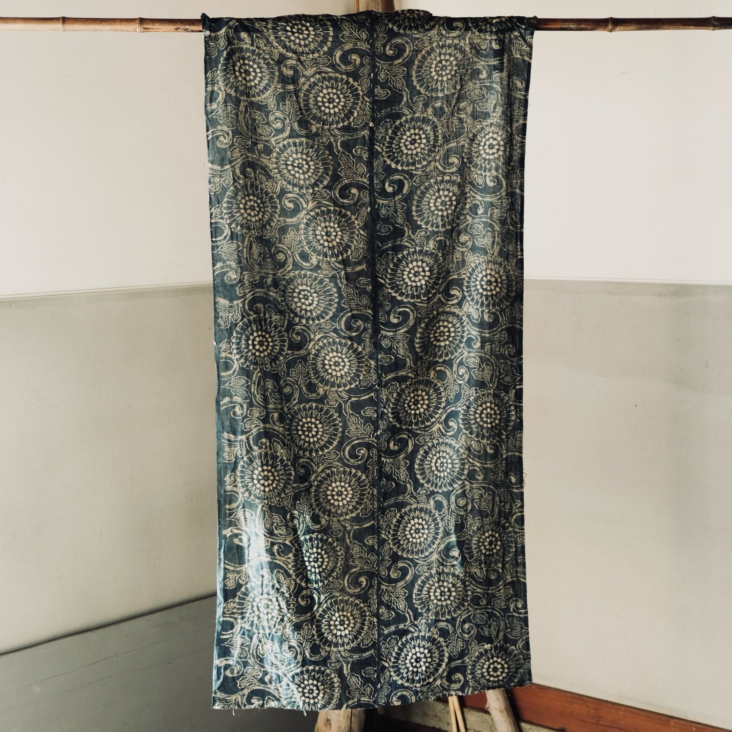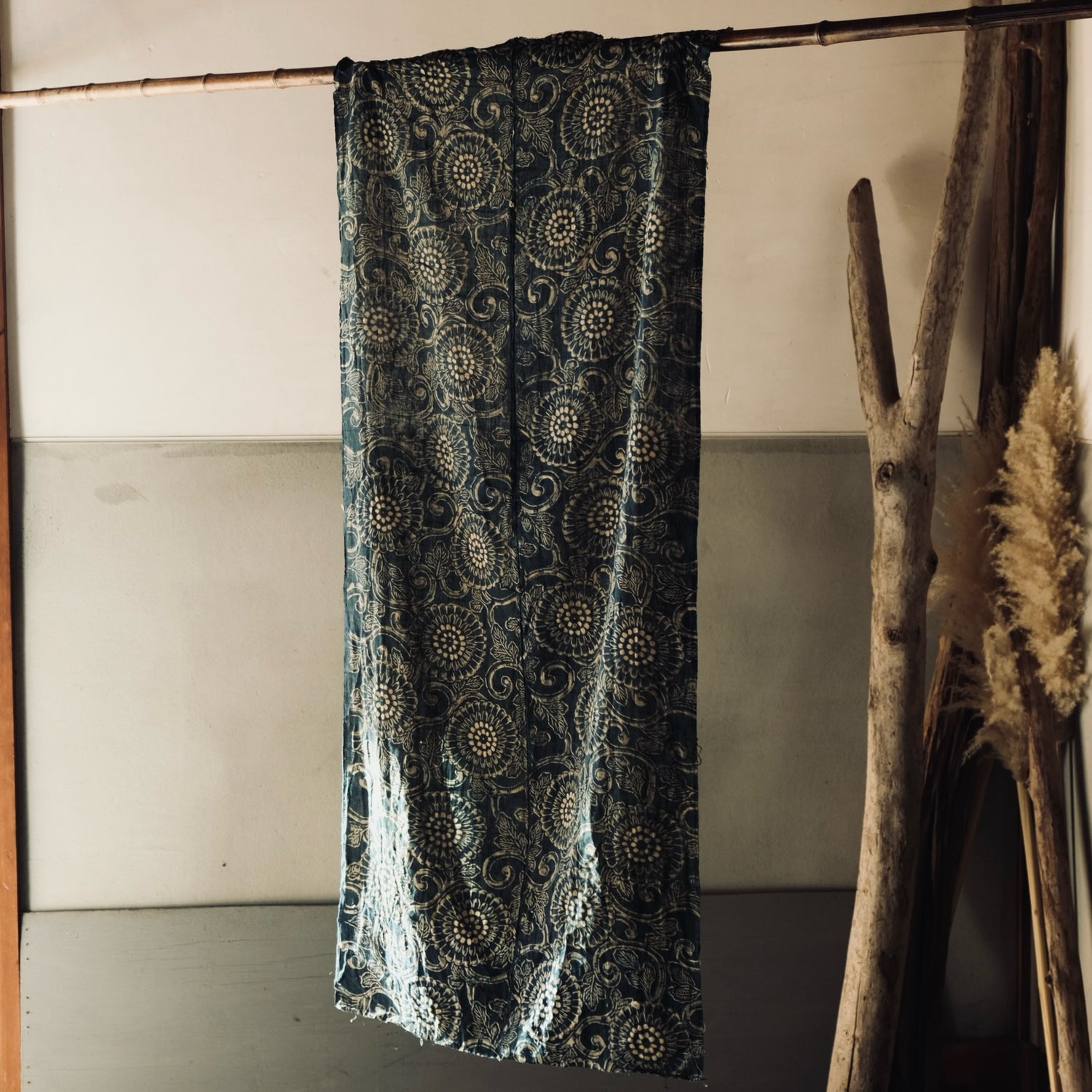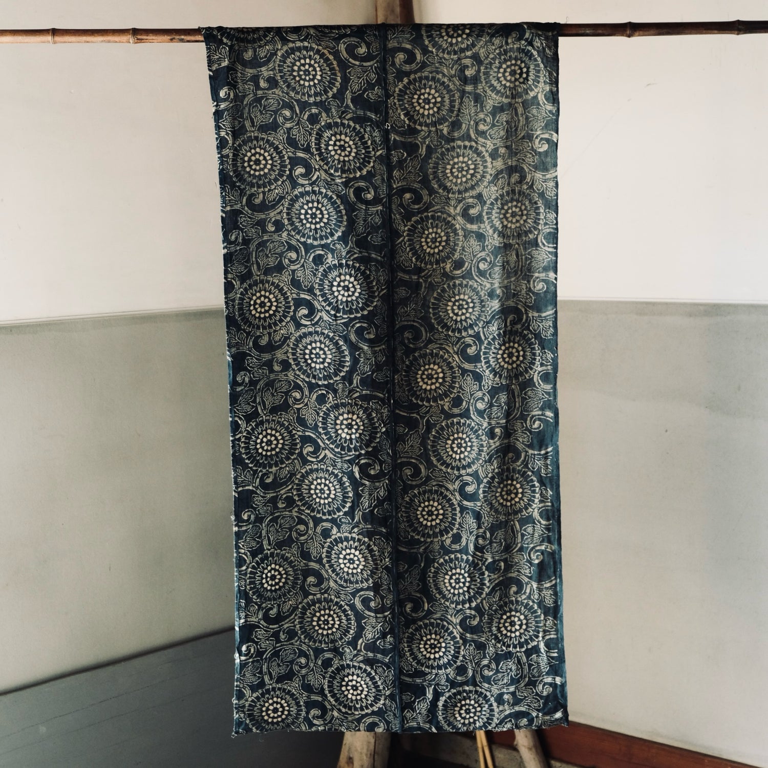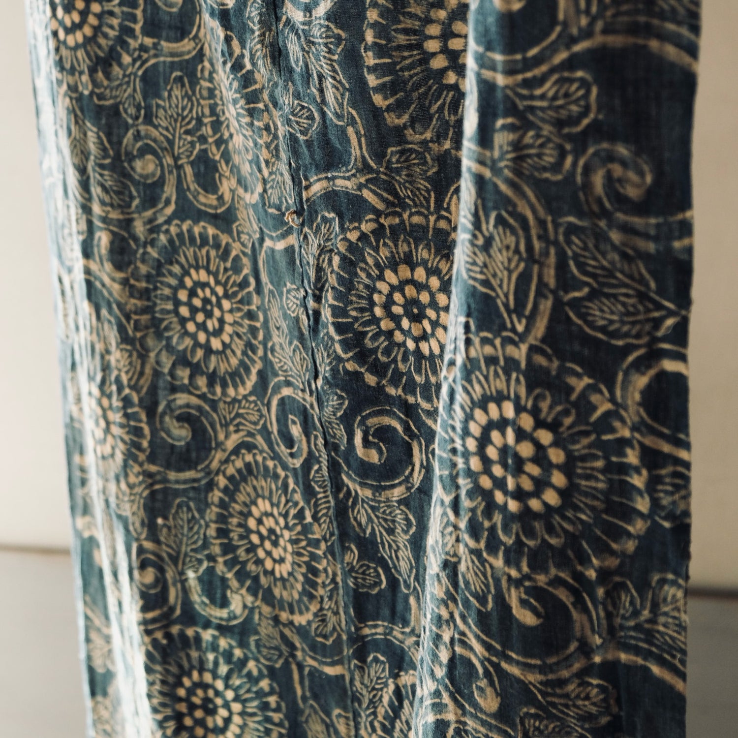 Vintage Japanese indigo dyed katazome chrysanthemum flower textile