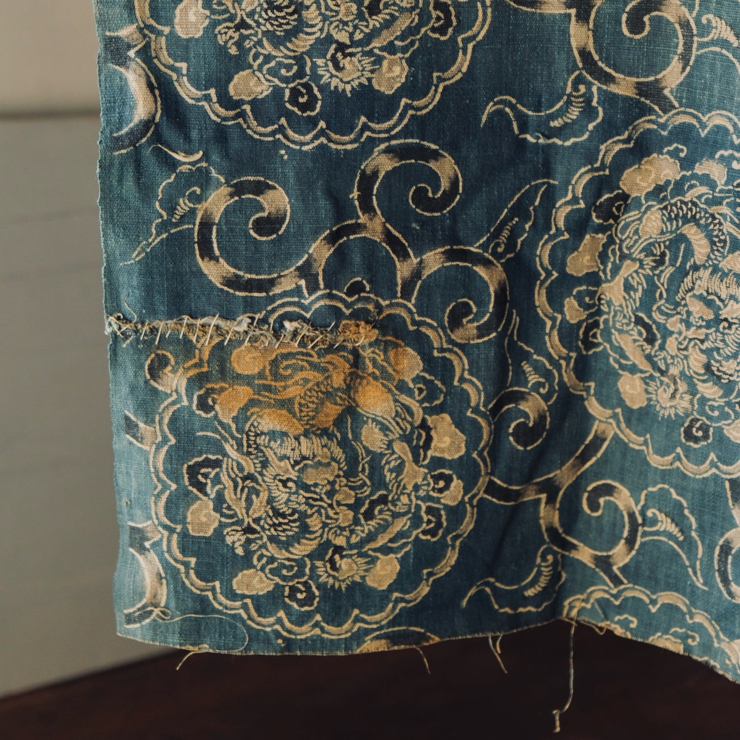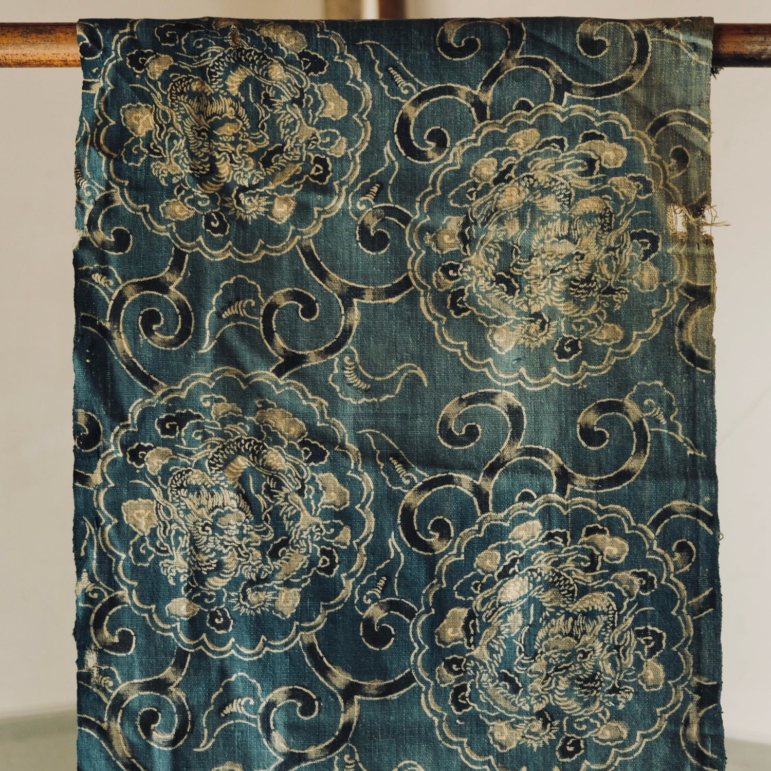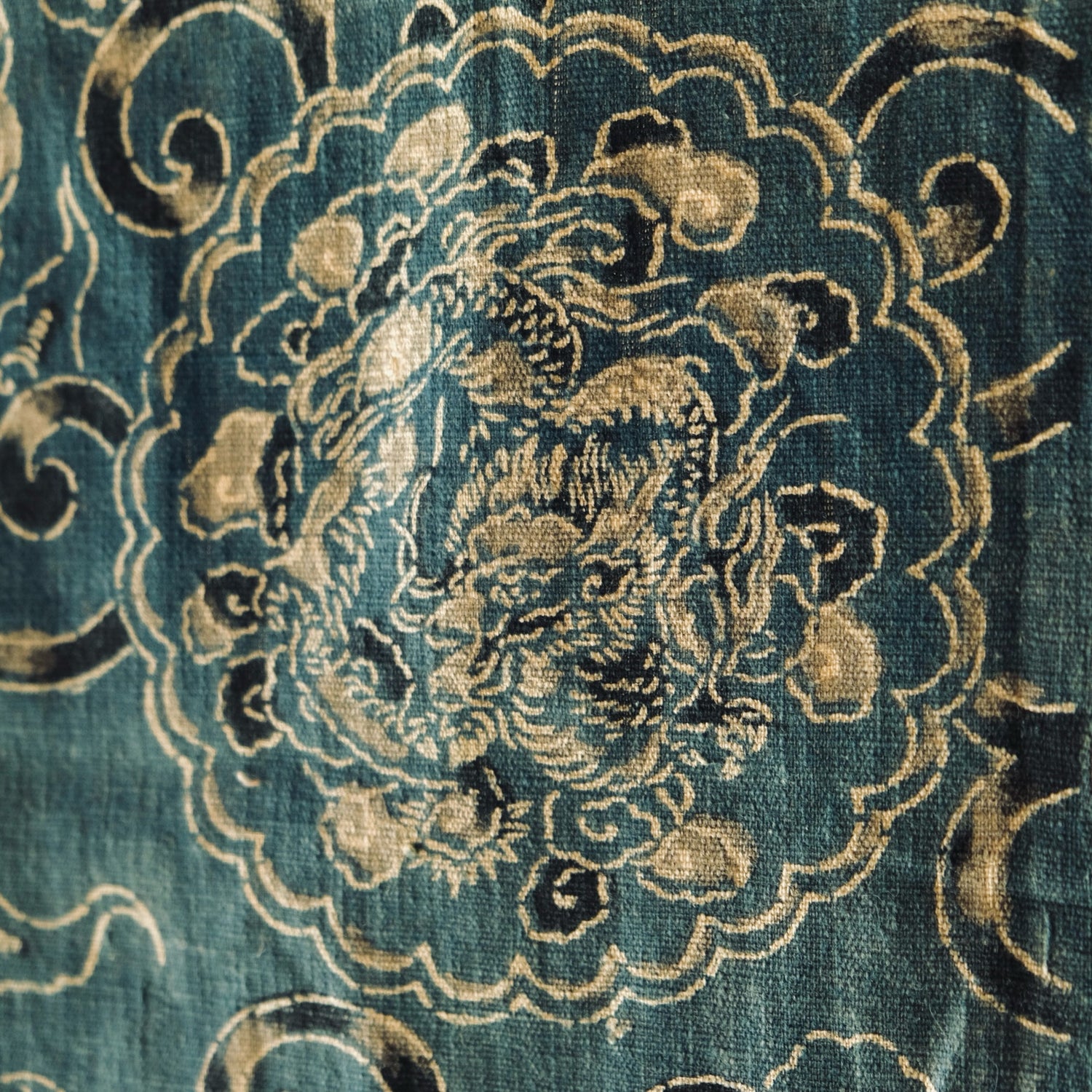 This one hand painted or hand stenciled dragon patterns on katazometextiles.