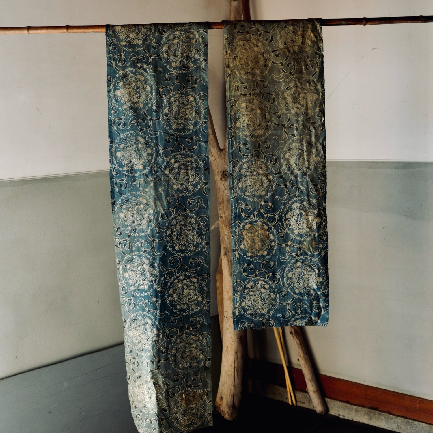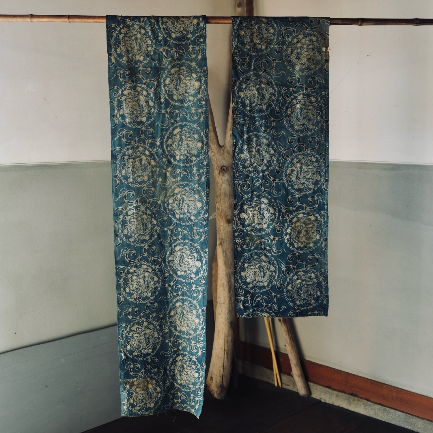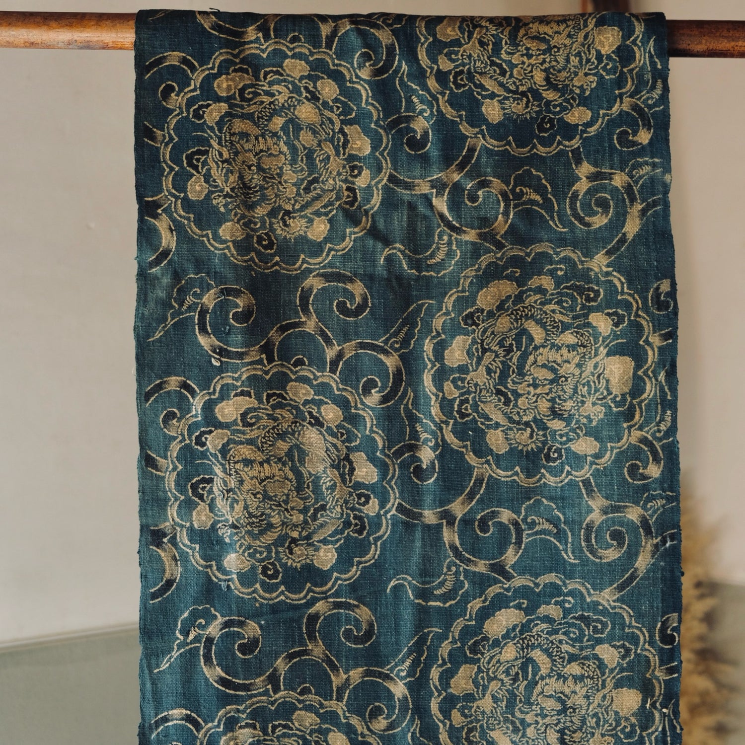 This one hand painted or hand stenciled dragon patterns on katazometextiles.