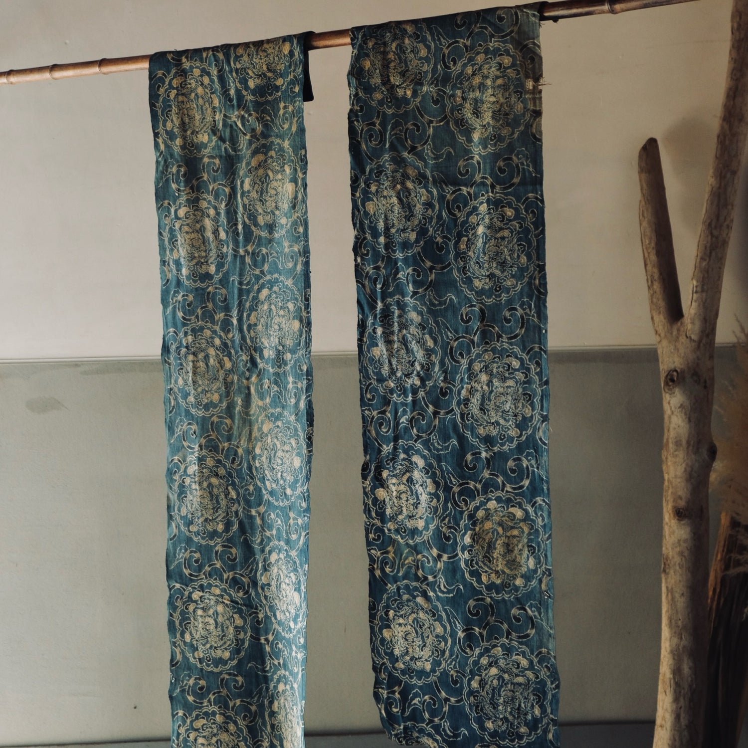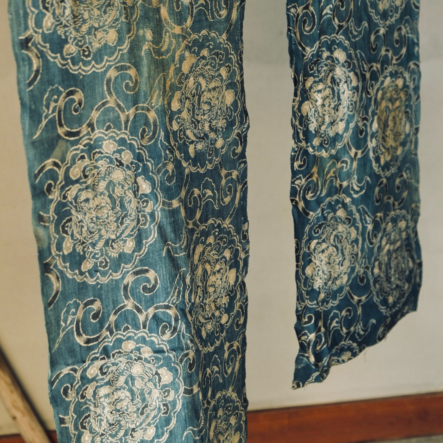 Vintage Japanese indigo-dyed Katazome dragon textile 2set