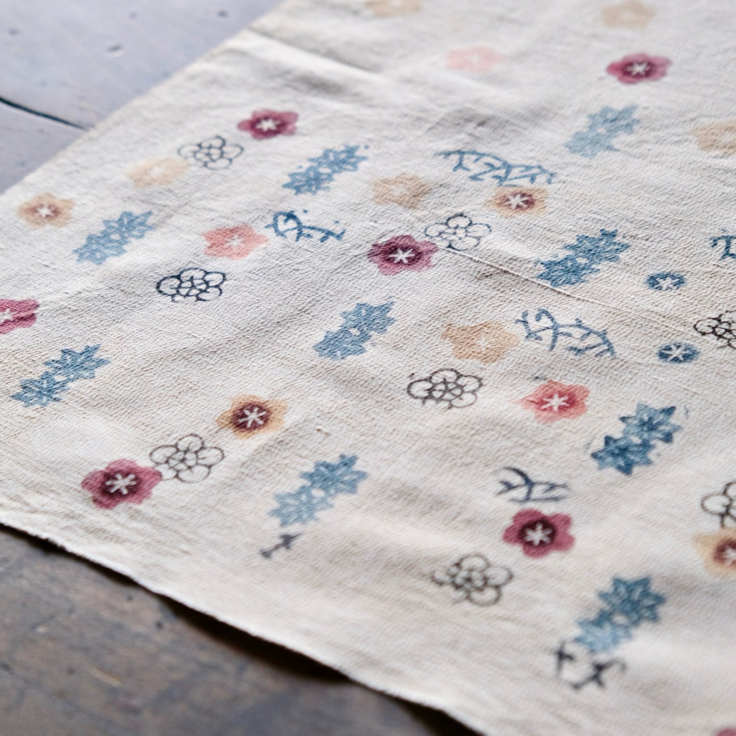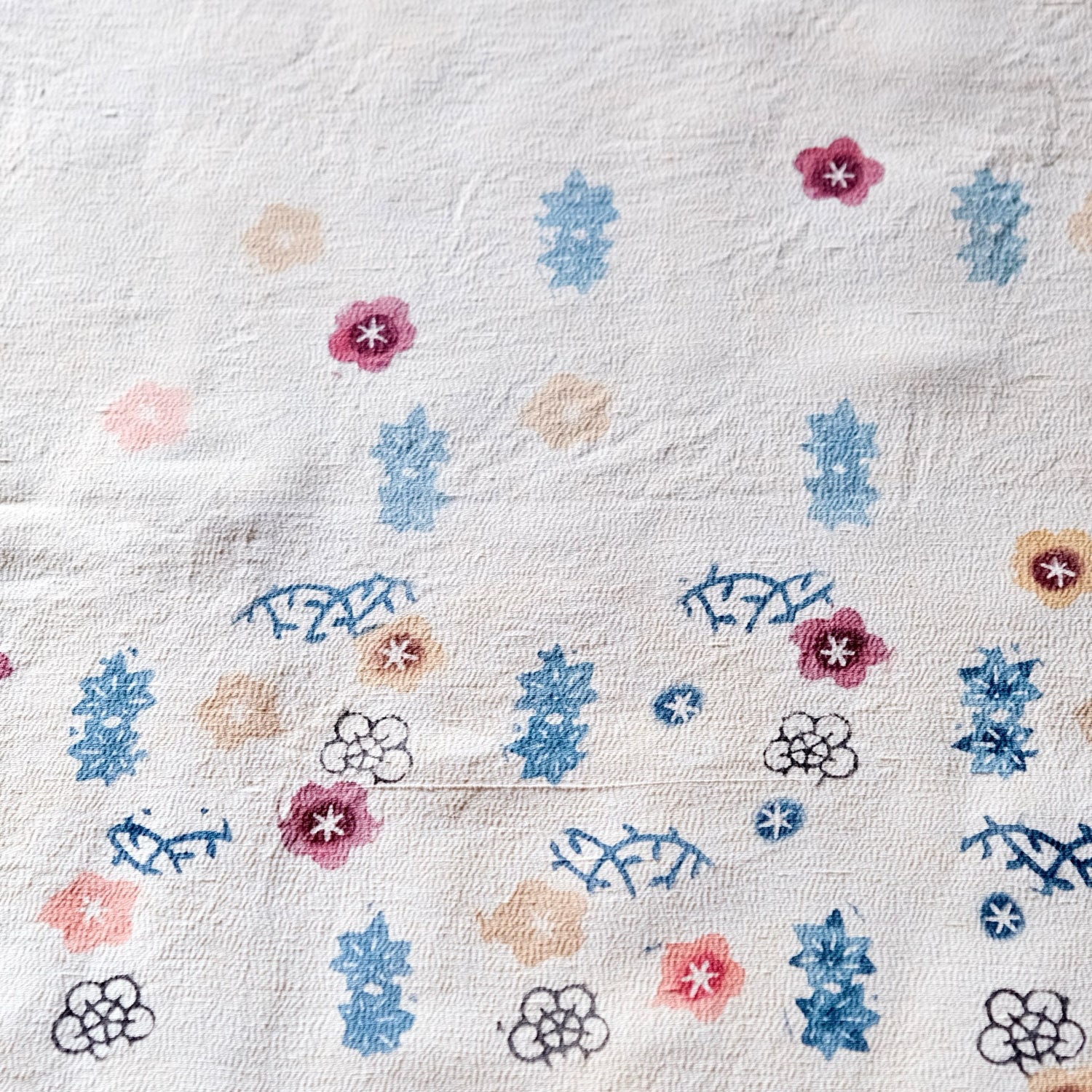 Vintage Japanese kimono silk textile Ryukyu Bingata okinawa Japanese small plum blossoms(b-19)
