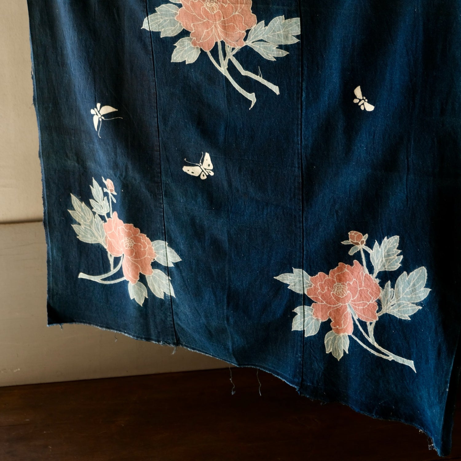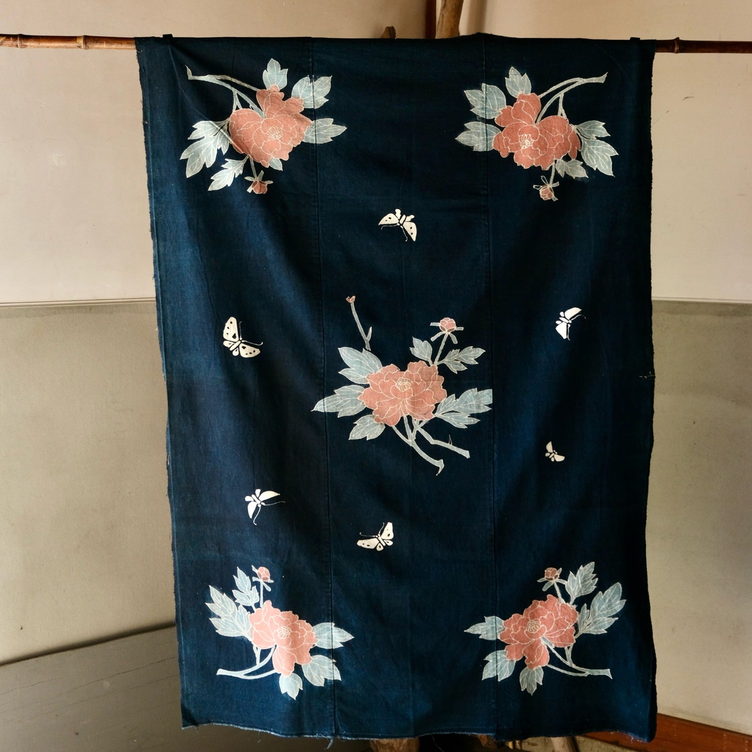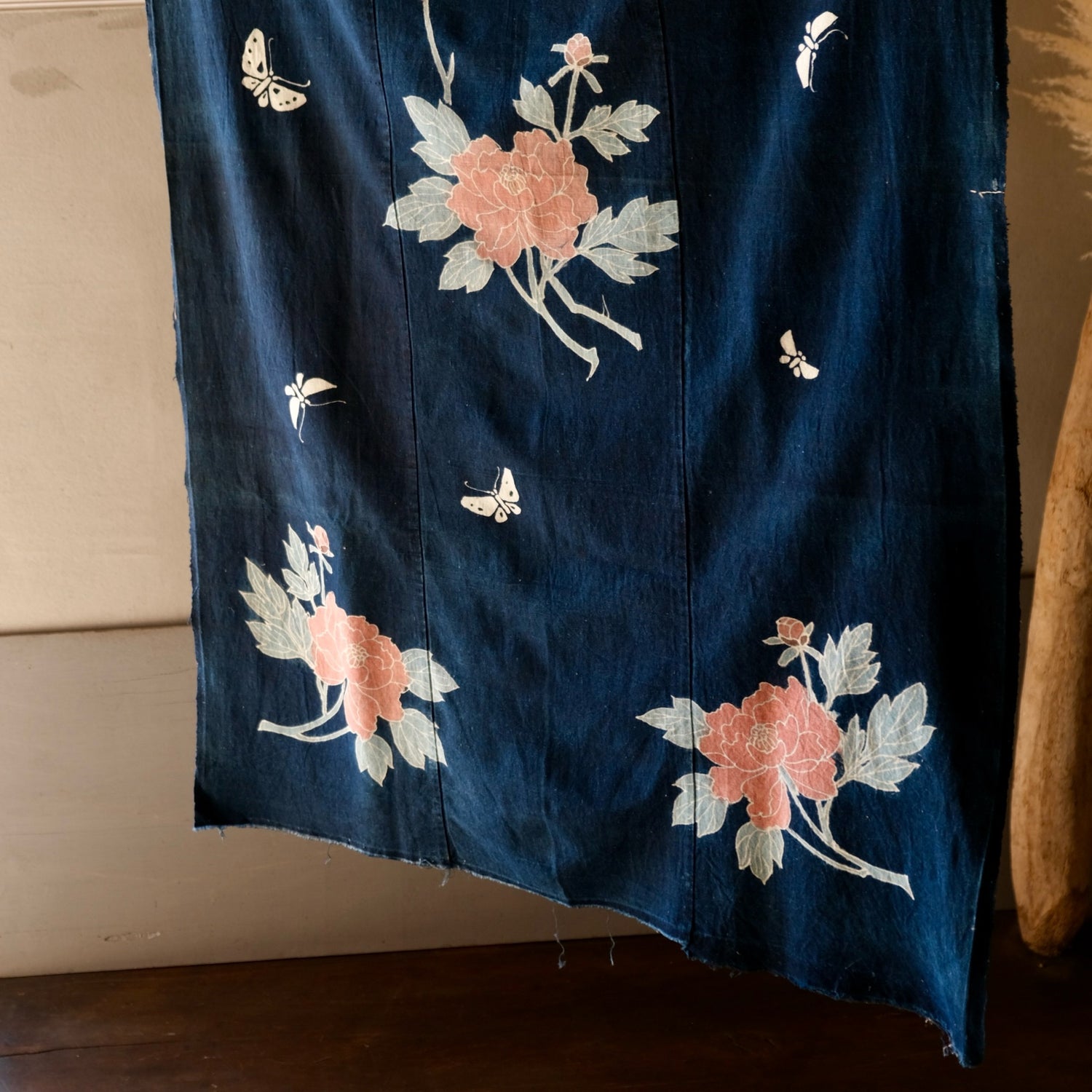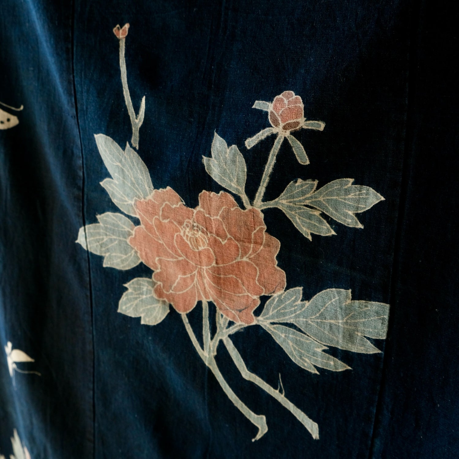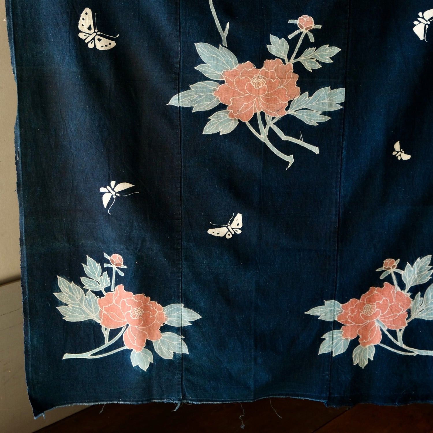 Vintage Japanese Tsutsugaki peony flower and butterfly