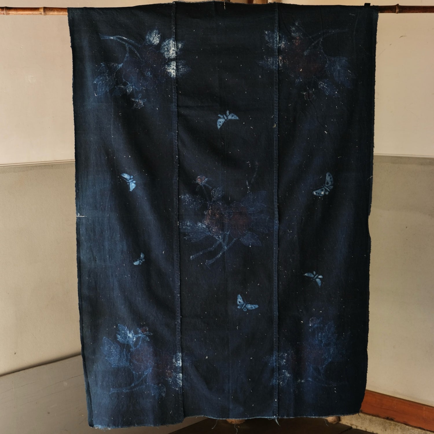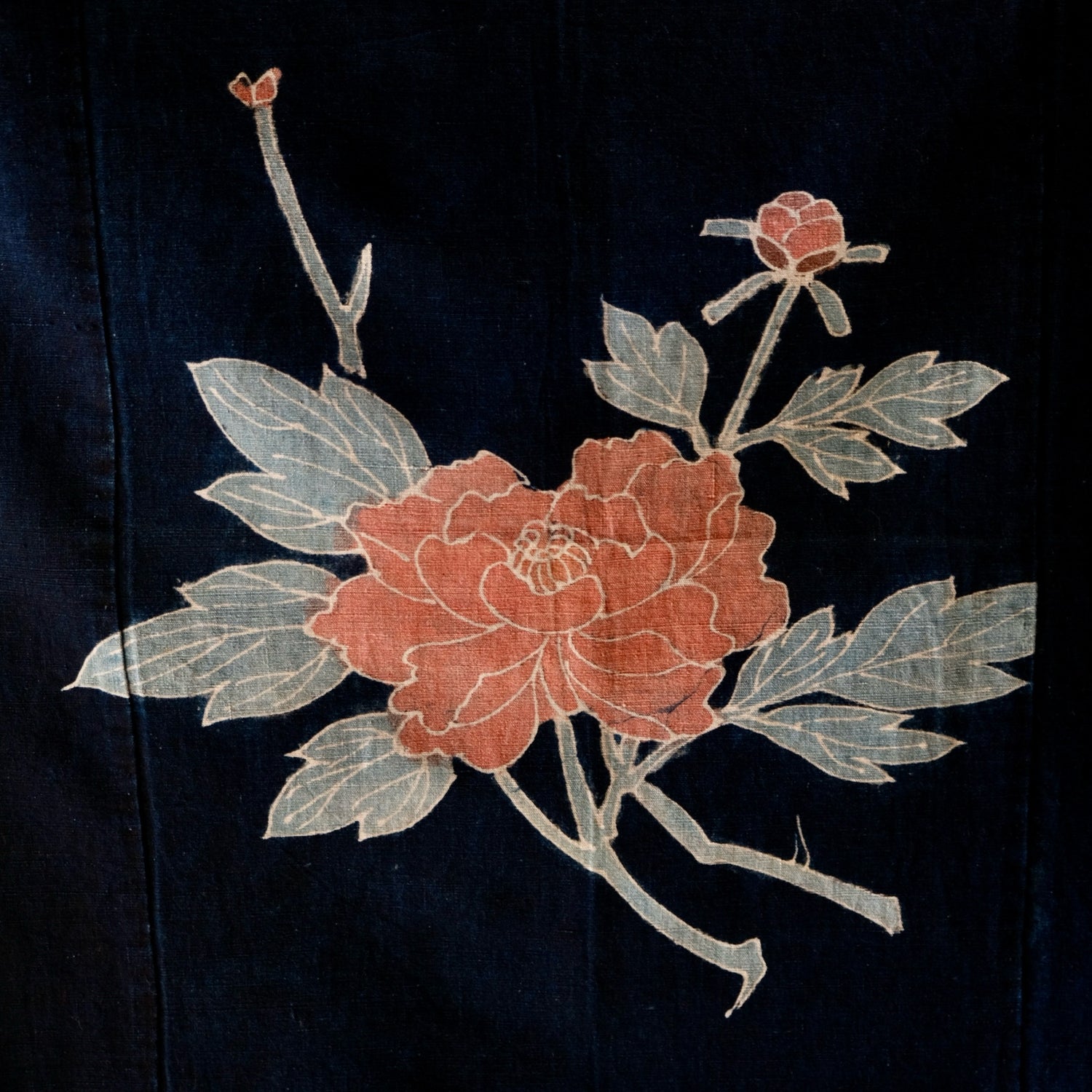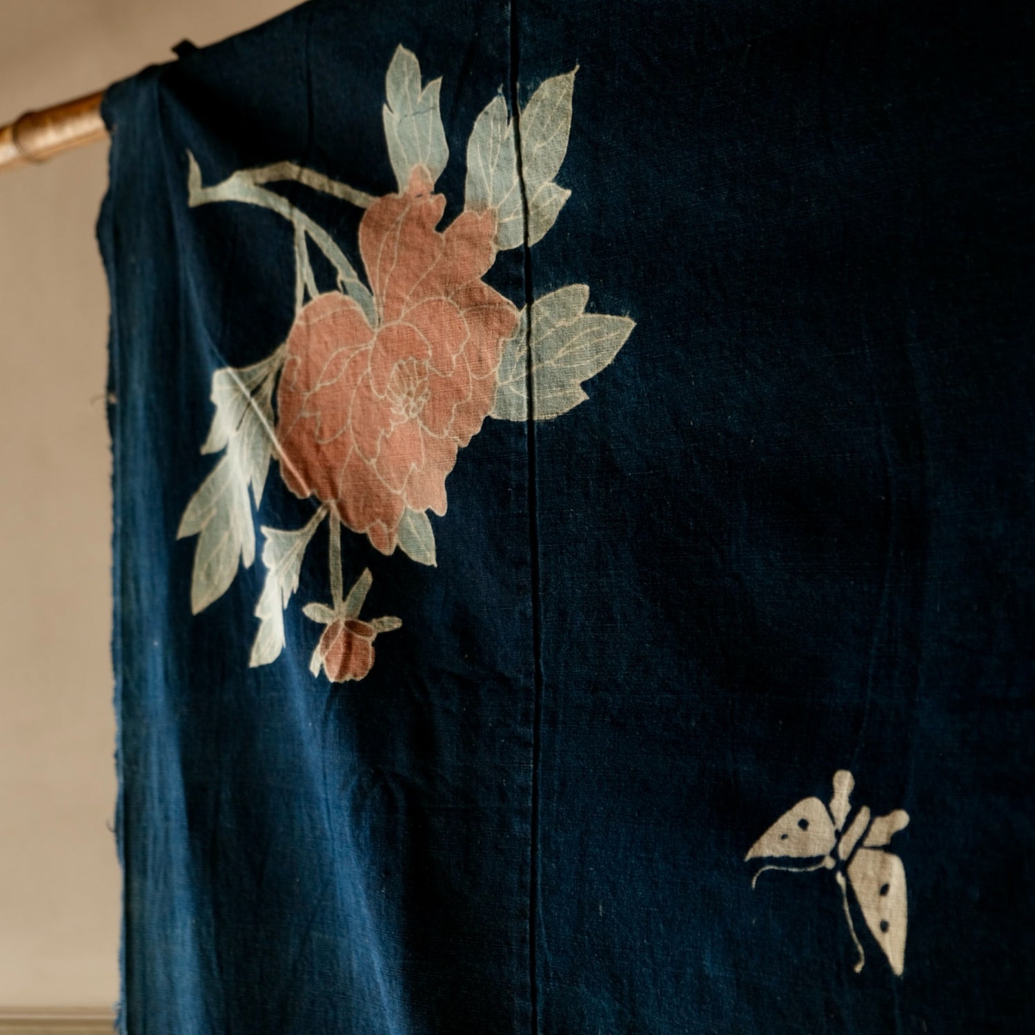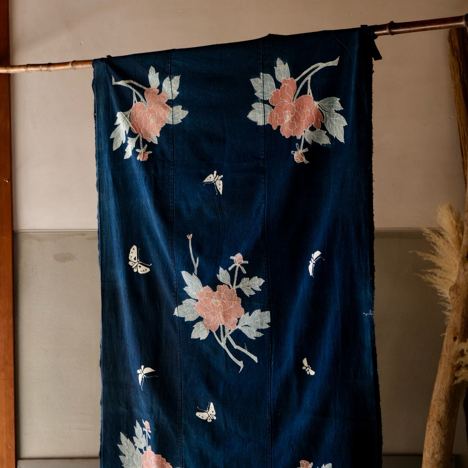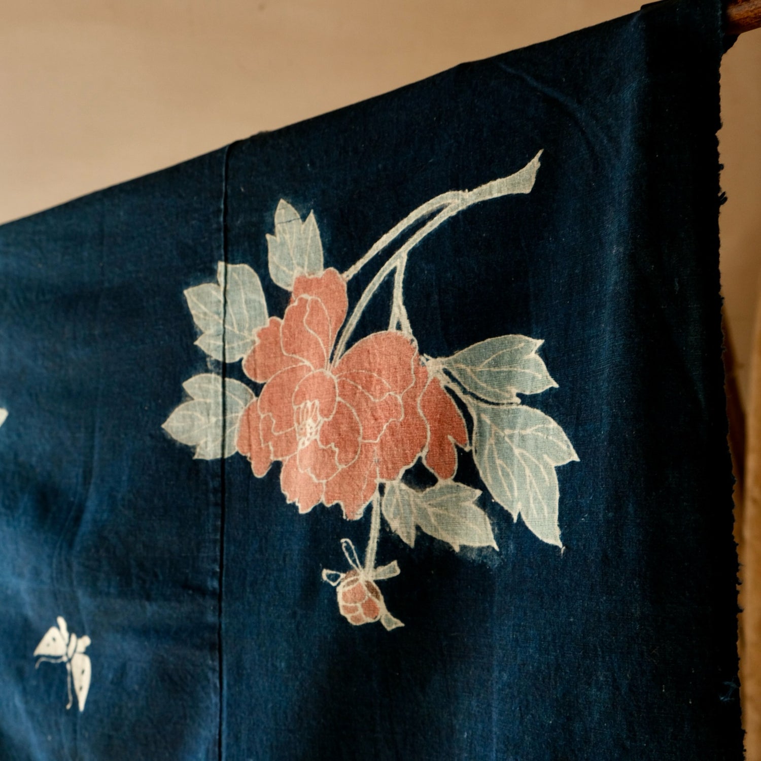 Vintage Japanese Tsutsugaki peony flower and butterfly